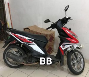 Ketiga pelaku diamankan barang bukti 1 (satu) unit sepeda motor merk Honda Beer warna putih, 1 ( satu ) unit HP merk Samsung J7 Core warna Gold, 1 (satu) unit JP merk Event Cross.