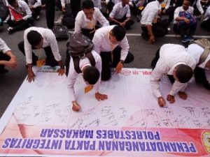 “Sebelum berangkat ke GOR, semua casis wajib makan pagi, itu untuk menghindari colaps/pingsan saat kegiatan berlangsung, jaga nama baik panitia Pembantu penerimaan Polrestabes di Makassar selama kegiatan penerimaan anggota Polri berlangsung” Tegasnya.