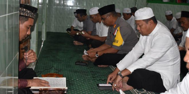 Polrestabesmakassar.com– Kapolrestabes Makassar Kombes Pol Wahyu Dwi Ariwibowo SIK beserta anggota menggelar dzikir dan doa bersama di Mesjid Al Iksan Polrestabes Makassar. Jumat 28/12/18 malam.