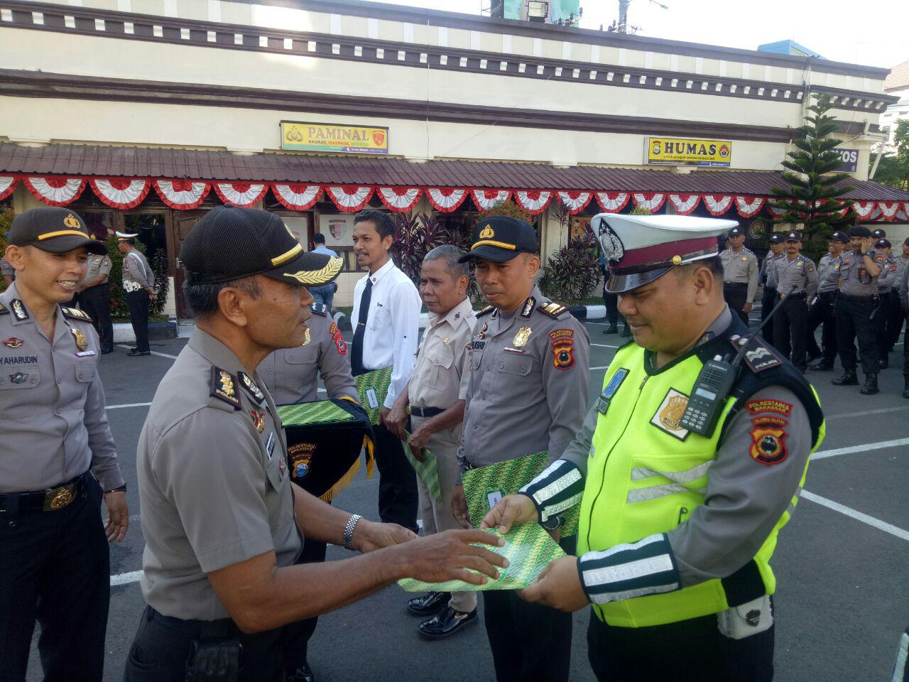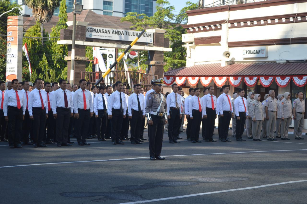 Upacara kenaikan pangkat penghargaan digelar di lapangan Apel Polrestabes Makassar dan di hadiri para Kabag, Kasat dan Kapolsek.