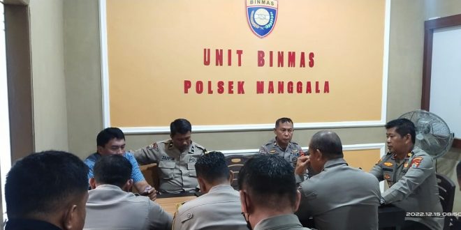 Makassar, Polsek Manggala_ Giat rutin Polsek Manggala analisa dan evaluasi pelaksanaan tugas serta kendala – kendala yang dihadapi dilapangan, kali ini mengumpulkan anggota Unit Binmas setelah pelaksanaan apel pagi di Mapolsek Manggala. Kamis (15/22/22).