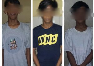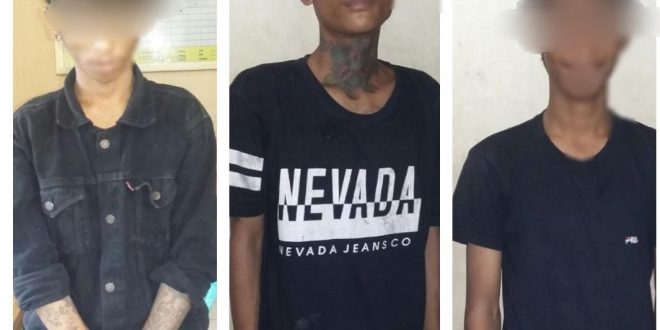 Lelaki IM alias Doyo (17) warga Jalan Kumala Makassar, lelaki AS (18) Komp Bumi Permata Sudiang dan lelaki RL (18) warga Jalan Sakura Manggala Makassar, diringkus di Jalan Kumala Makassar, Jumat (11/5/2018).