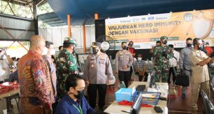 JAKARTA – Panglima TNI Marsekal Hadi Tjahjanto dan Kapolri Jenderal Listyo Sigit Prabowo meninjau langsung kegiatan vaksinasi massal di Pondok Pesantren (Ponpes) Minhaajurrosyidiin, Jakarta Timur (Jaktim), Selasa (13/7/2021). Vaksinasi massal tersebut diprakarsai oleh DPP Lembaga Dakwah Islam Indonesia (LDII) bekerjasama dengan Kementerian Kesehatan RI, TNI dan Polri. Sigit mengapresiasi pihak Pesantren dan DPP LDII lantaran telah berperan dalam melakukan …