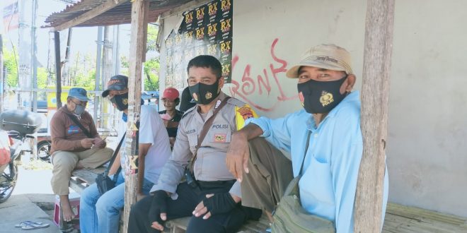 Makassar – Bhabinkamtibmas Tamalanrea Jaya Polsek Tamalanrea Polrestabes Makassar, Bripka Syamsuddin, melaksanakan Sosialisasi Gerakan Ayo Pakai Masker kepada warga binaan, jalan perintis kemerdekaan 4, Tamalanrea Makassar, Selasa (22/9/2020).