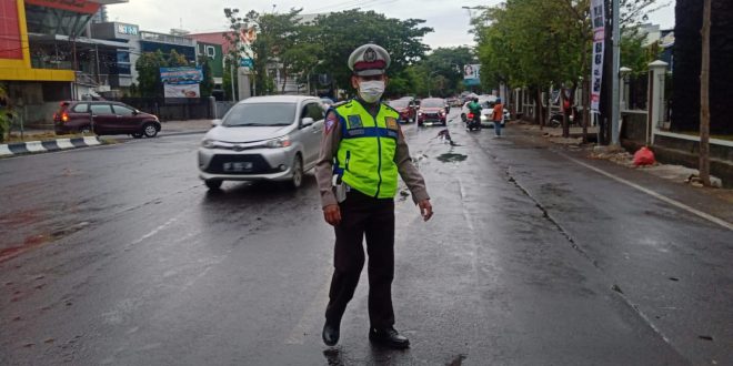 Panit 2 Lantas Polsek Ujung Pandang, Aiptu Syahabuddin bersama personel lainnya melaksanakan pengaturan lalu lintas di simpang Jl. Arief Rate – Karunrung Kota Makassar dengan tujuan untuk menjaga kamseltibcar lantas serta keselamatan masyarakat yg menyeberang jalan dari potensi kepadatan arus lalin serta potensi kecelakaan lalu lintas.