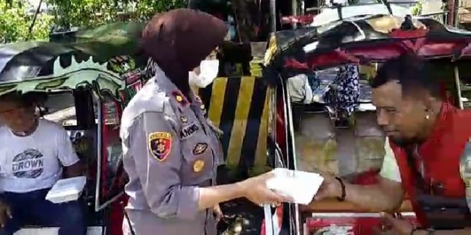 Makassar – Bentuk kepedulian Polri kepada warga yang membutuhkan disaat masa pandemi covid-19 dan berada di wilayah hukum Polsek Bontoala. Kapolsek Bontoala Kompol Andriyani LiliKay bersama personil berbagi pada warga yang berdampak, Jumat (4/9/2020).