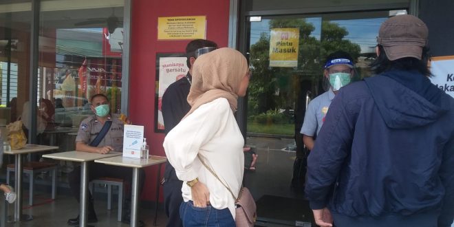 Rabu ( 16/06/2020 ) di MCDonalds salah satu penyedia makanan dan minuman cepat saji dijalan sultan Alauddin Kelurahan Gunung sari Kecamatan Rappocini Makassar , tampak terlihat Aiptu Syahrir bersama petugas Security meminta kepada pengunjung yang akan masuk untuk memakai masker dan cuci tangan .