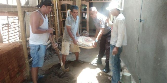 Polrestabesmakassar.com – Bhabinkamtibmas Polsek Tallo Polretabes Makassar Aiptu H Muh Tahir menyempatkan diri untuk ikut membantu warga binaanya yang sedang membangun rumah di kel. Wala Walaya kec. Tallo Kota Makassar. Senin(17/02/2020).