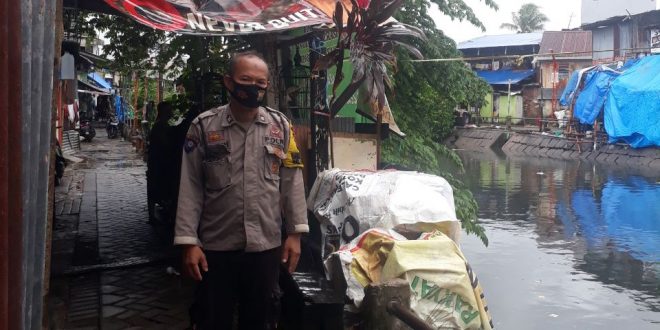 Makassar – Bhabinkamtibmas Polsek Bontoala  Polrestabes Makassar Aiptu Husain sambangi warga yang tinggal di pinggir kanal serta  memberikan himbauan kamtibmas waspada banjir di wikayah binaannya, di Kelurahan Layang Kec. Bontoala , Sabtu (19/12/2020).