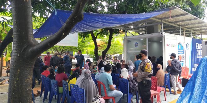 Makassar – Bhabinkamtibmas Kelurahan Bontoduri Polsek Tamalate Bripka Fitrah memantau giat vaksinasi di wilayah binaannya tepatnya di posko Makassar Recovery Kompleks BTN Tabaria Jumat (28/01/2022).