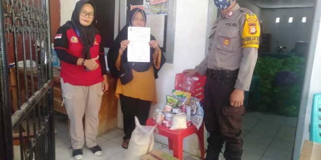 Bhabinkamtibmas Datangi Tempat Pembagian Sembako di Kel.Karunrung Agar Terciptanya Situasi Kondusif  Saat Pembagian Berlangsung.