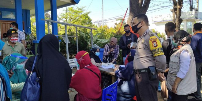 Makassar – Bhabinkantibmas Kel Maccini Sombala Bripka Ruslan Dahlan memantau kegiatan Tes Swab massal gratis di Kantor Kecamatan Tamalate Jln Danau Metro Tanjung Bunga, Selasa (15/09/2020).
