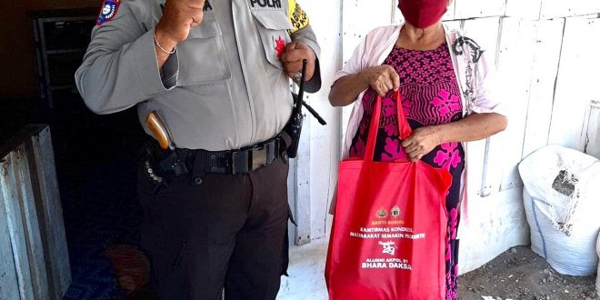 ”bantuan paket sembako gratis dari alumni Akpol tahun 1991 telah kami serahkan kepada warga binaan kami yang terkena dampak Covid 19 an. Paulus Burangnga, 61 Thn, tidak ada, alamat jln. Lanraki lr. 6 RT 03 RW 04 kel. Berua, kec. Biringkanaya Kota Makassar” pungkas Aipda Made Yasa bhabinkamtibmas.