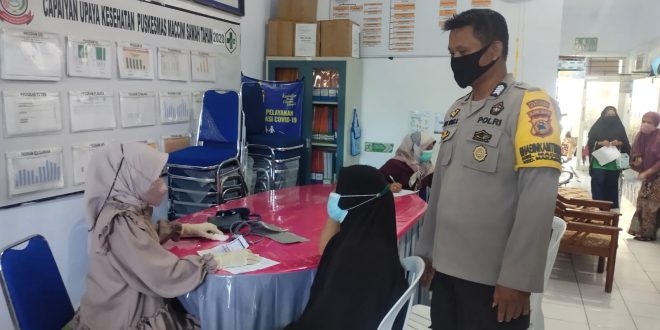 Makassar. Bhabinkamtibmas Polsek Makassar Polrestabes Makassar Aipda M. Yasir, Sabtu pagi melaksanakan kegiatan pemantauan vaksinasi di puskesmas Maccini jalan Maccini Sawah Kel. Maccini Kec. Makassar (18/12/2021)