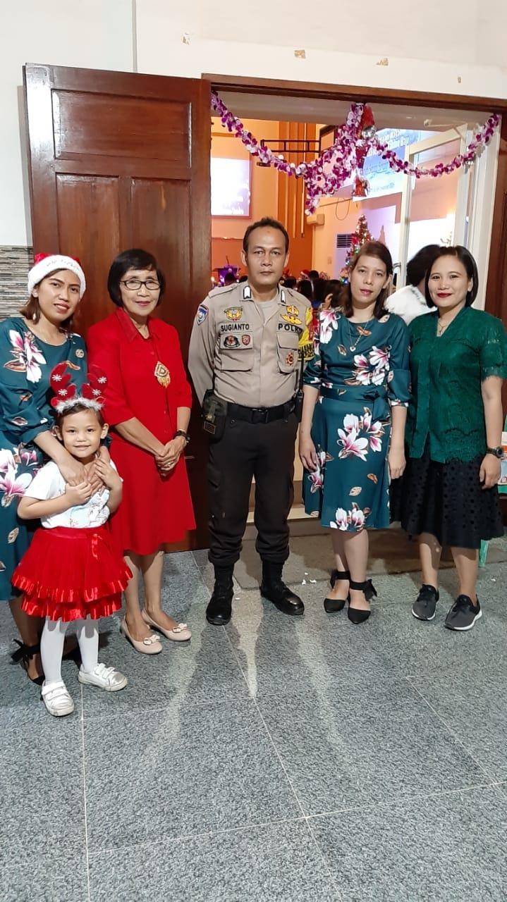 Polrestabesmakassar.com- Untuk memberikan rasa aman dan nyaman bagi umat Kristen, Bhabinkamtibmas Kelurahan Bonto Lebang Polsek Mamajang Bripka Sugianto melakukan pengamanan Ibadah perayaan Natal di gereja Kristen Sulawesi Selatan (GKSS) Jemaat Makio Baji Jalan Tupai Makassar, Kamis (19/12/2019).