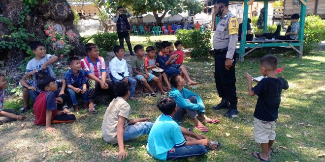 Seperti kegiatan siang ini Bhabinkamtibmas Kel. Tallo Polsek Tallo Polrestabes Makssar Bripka Mus Mulyadi melaksanakan patroli himbauan tentang pencegahan penyebaran virus Corona atau Covid-19 kepada anak-anak di wilayah Kelurahan Tallo, Kecamatan Tallo, Kota Makassar . Kamis (04/11/2020).