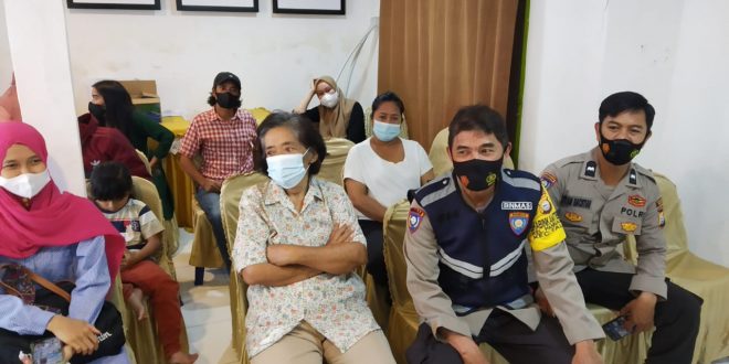 Di kesempatan itu, Babinkamtibmas tak lupa untuk terus mengingatkan masyarakat yang akan di vaksin agar selalu mematuhi protokol kesehatan. Caranya dengan tetap menggunakan masker, mencuci tangan dengan sabun di air mengalir serta menjaga jarak dan mematuhi peraturan Daerah tentang penanggulangan penyakit menular ini.,ungkapnya.