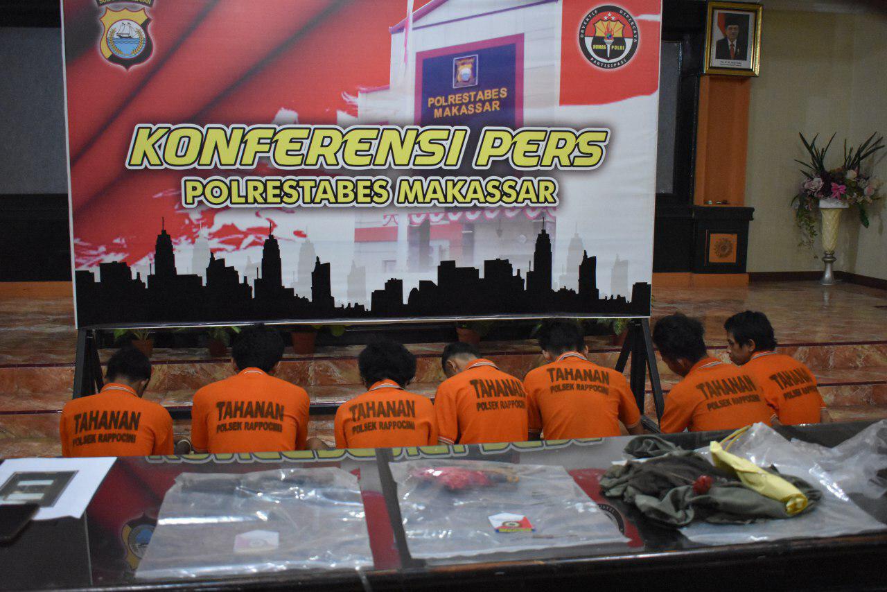 Ada 7 pelaku diamankan timsus Polsek Rappocini yakni, Anno (20), Tezar (20), Tison (21), Putra (19), Dewa (19), Z (17), Fatar (19).