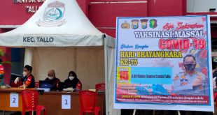 Makassar. Dalam rangka menyambut HUT Bhayangkara yang ke 75, Kepolisian Resort Kota Besar (Polrestabes) Makassar, mengadakan vaksin massal untuk masyarakat umum, keluarga Polri dan Polri di beberapa lokasi di Makassar. Pelaksanaan vaksin berlangsung dari tanggal 14 s.d 24 Juni 2021 mendatang. Yang pada hari ini, Selasa (15/06/21) Gabungan Polsek Bontoala dan Polsek Tallo melaksanakan Vaksinasi Massal yang di laksanakan di …