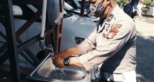 Makassar – Dengan Rajin mencuci tangan dengan sabun setidaknya dapat memutus Rantai penyebaran Covid 19. Hal ini diperlihatkan Kanit Provos Polsek Tamalate Polrestabes Ipda Muh Darwis sebelum masuk ke Mako terlebih dulu mencuci tangan agar semuanya Aman Daan terhindar dari penularan Covid-19 “Ini juga salah satu cara mengedukasi personil maupun warga yang akan masuk ke kantor terlebih dulu mencuci tangan …