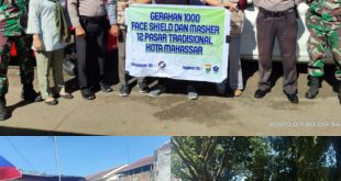 Makassar – Gerakan 1000 Facefield dan Masker Kapolsek Tamalate Polrestabes Makassar ikut berpartisipasi dengan membagikan faceshield kewarga pengunjung pasar tradisional Pabaeng-Baeng Jln Sultan Alauddin, Kamis (31/07/2020). Pembagian ini gratis untuk setiap warga dengan tujuan untuk mencegah dan memutus rantai penyebaran covid -19 yang mewabah kota Makassar saat ini. “Tentunya gerakan 1000 faceshield dan masker ini salah satu cara bagaimana kita …