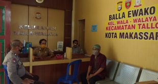 Makassar – Bhabinkamtibmas Kelurahan Wala-Walaya Polsek Tallo Polrestabes Makassar Aiptu H. Muh. Tahir melaksanakan sambang di Kantor Kelurahan Wala-Walaya Kecamatan Tallo Kota Makassar, Selasa (07/07/2020). Dalam kesempatan tersebut bhabinkamtibmas memberikan himbauan kepada perangkat Lurah untuk menjaga kamtibmas dalam program tatanan hidup baru oleh pemerintah. Ia juga memberikan Bimbingan dan Penyuluhan tentang Prosedur Tatanan Hidup Baru dalam menghadapi Wabah Virus Corona …
