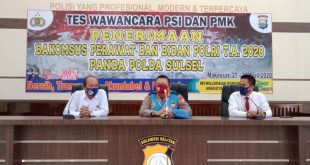 MAKASSAR-SULSEL : Tahapan Penelusuran Mental Kepribadian (PMK) terhadap 12 Peserta Bakomsus Perawat dan Bidan Polri T.A. 2020 digelar hari ini. hal ini dibenarkan oleh Karo SDM Polda Sulsel Kombes Pol Anang Pudjijanto, S.I.K., M.Si. Selaku Ketua Pelaksana Penerimaan Bakomsus Perawat dan Bidan Polri T.A. 2020 saat ditemui oleh wartawan usai pengumuman hasil PMK. PMK merupakan salah satu item tes dalam …