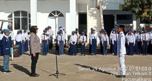 Makassar, Wakapolsek Tamalanrea AKP Kun Sudarwati menjadi Inspektur Upacara (Irup) Bendera yang berlangsung di SMK Yayasan Laniang, BTP, Tamalanrea Makassar, Senin(29/8/2022) pagi. Dalam arahan singkatnya, Wakapolsek Tamalanrea menyampaikan kepada para peserta upacara agar mengembangkan jiwa persatuan dan kesatuan bangsa, disiplin, kepedulian terhadap sesama dan lingkungan sekolah. “Tertib berlalu lintas dan mengutamakan keselamatan saat berkendara, bagi siswa yang belum cukup umur …