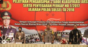 Polrestabesmakassar.com – Kapolda Sulsel Irjen Pol Drs Umar Septono memberikan sambutan sekaligus membuka Kegiatan Pelatihan Pengarsipan Dan Kode Klarifikasi Arsip serta Penyegaran Perkap No. 7 Tahun 2017 di lingkungan Polri. Kegiatan tersebut di selenggarakan di Ballroom Anging Mammiri Hotel Dalton, Jln. P. Kemerdekaan Km 16 Makassar, Rabu (03/10) pada pukul 09.00 Wita. Pada saat membuka kegiatan, Tampak sosok nomor satu …