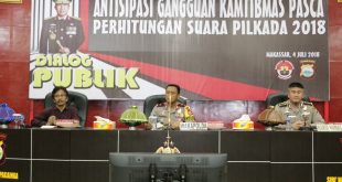 Polrestabesmakassar.com– Polda Sulsel, Wakapolda Sulsel Brigjen Pol Risyapudin Nursin memberikan sambutan sekaligus membuka kegiatan Dialog Publik yang bertempat Aula Anindhita Lt III Mapolda Sulsel pada pukul 08.30 Wita, Rabu (04/07) Pagi. Dalam kegiatan tersebut, Turut di hadiri pula oleh Pejabat Utama Polda Sulsel beserta Personil Polda Sulsel yang di tunjuk. Dialog tersebut mengangkat tema “Mengantisipasi Gangguan Kamtibmas Pasca Perhitungan Suara …