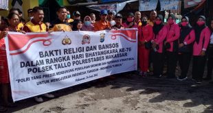 Makassar : Tepat pada 1 Juli nanti, jajaran Polri bakal memperingati Hari Bhayangkara yang ke-76 di tahun 2022 ini. Berbagai kegiatan dilakukan jajaran Polrestabes Makassar, salah satunya dengan Bakti Sosial (Baksos). Seperti yang dilakukan jajaran Polsek Tallo yang dipimpin Kapolsek Kompol Badollahi,SH.,M.A.P melaksanakan aksi bersih-bersih di Masjid Baitul Mu’minin Kel.Pannampu Kec.Tallo, Jumat (24/6/22). “Aksi peduli kebersihan itu dilaksanakan bersama masyarakat …