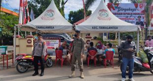 Makassar – Polsek Tamalanrea Polrestabes Makassar beserta gabungan personil Satpol PP dan Tim tenaga kesehatan dipimpin langsung Kapolsek Kompol Muhammad Aris kembali melaksanakan kegiatan pemeriksaan kepatuhan warga dalam menerapkan protokol kesehatan, di jalan Tamalanrea Raya, BTP Makassar, Sabtu (15/8/2020). Nampak terpantau kamera awak media, gabungan personil melakukan pemeriksaan dan penindakan kepada warga yang tidak menggunakan masker saat beraktifitas diluar rumah. …