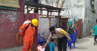 Makassar – Bhabinkamtibmas Kelurahan Tallo Polsek Tallo Polrestabes Makassar Bripka Mus Mulyadi melaksanakan pendampingan penyemprotan cairan disinfektan di wilayah RW 01 dan RW 02 Kelurahan Tallo, Kecamatan Tallo, Kota makassar. Sabtu (11/07/2020) Penyemprotan dilakukan oleh Relawan Penanganan Covid-19 bersama Perangkat Kelurahan setempat. Terpantau, penyemprotan dilakukan pada seluruh rumah warga dan area publik. Hal ini bertujuan untuk memutus mata rantai …