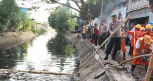 Polrestabes Makassar Bergotong Royong Bersihkan Kanal