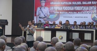 Polrestabesmakassar.com – Polda Sulsel, Kapolda Sulsel Irjen Pol. Drs. Umar Septono memberikan arahan langsung kepada Siswa Diktuk Bintara T.A 2018 yang bertempat di Aula Pharamarta SPN Batua Polda Sulsel Jl. Urip Sumohardjo pada pukul 10.00 Wita, Selasa (07/08) Pagi. Tampak dalam kegiatan tersebut, orang nomor satu di Polda Sulsel itu di dampingi langsung oleh Ka SPN Batua Polda Sulsel. Diketahui …
