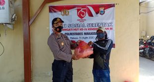 Makassar-Kapolsek Makassar Polrestabes Makassar Kompol Kodrat Muh. Hartanto, S.ik didampingi oleh Wakapolsek AKP A. Awad, S.Sos serta Kanit Binmas Iptu H. Jabir menyerahkan paket sembako kepada warga terdampak covid-19. Rabu (19/08/2020) Kegiatan yang dilaksanakan oleh jajaran Polsek Makassar merupakan rangkaian kegiatan bakti sosial serentak yang dilakukan oleh jajaran Polrestabes Makassar dalam rangka memperingati HUT RI Ke-75 tahun 2020. Saat dikonfirmasi …