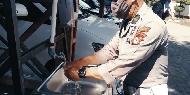 “Ini juga salah satu cara mengedukasi personil maupun warga yang akan masuk ke kantor terlebih dulu mencuci tangan ini adalah salah satu contoh mematuhi protokol kesehatan ” kata Ipda Muh Darwis Rabu (12/08/2020).