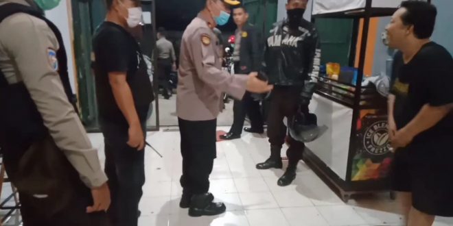 Tripika bersama jajarannya berkeliling di seputaran Kecamatan Rappocini Kotamadya Makassar mendatangi warga yang sedang nongkrong di kedai kopi Jalan Minasa Upa Minggu malam (05/04/2020).
