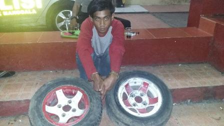 Dari tangan pelaku turut diamankan barang bukti dua buah ban mobil beserta velg yang diduga hasil dari aksi tindak kejahatan pelaku, ungkap Kassubag Humas.