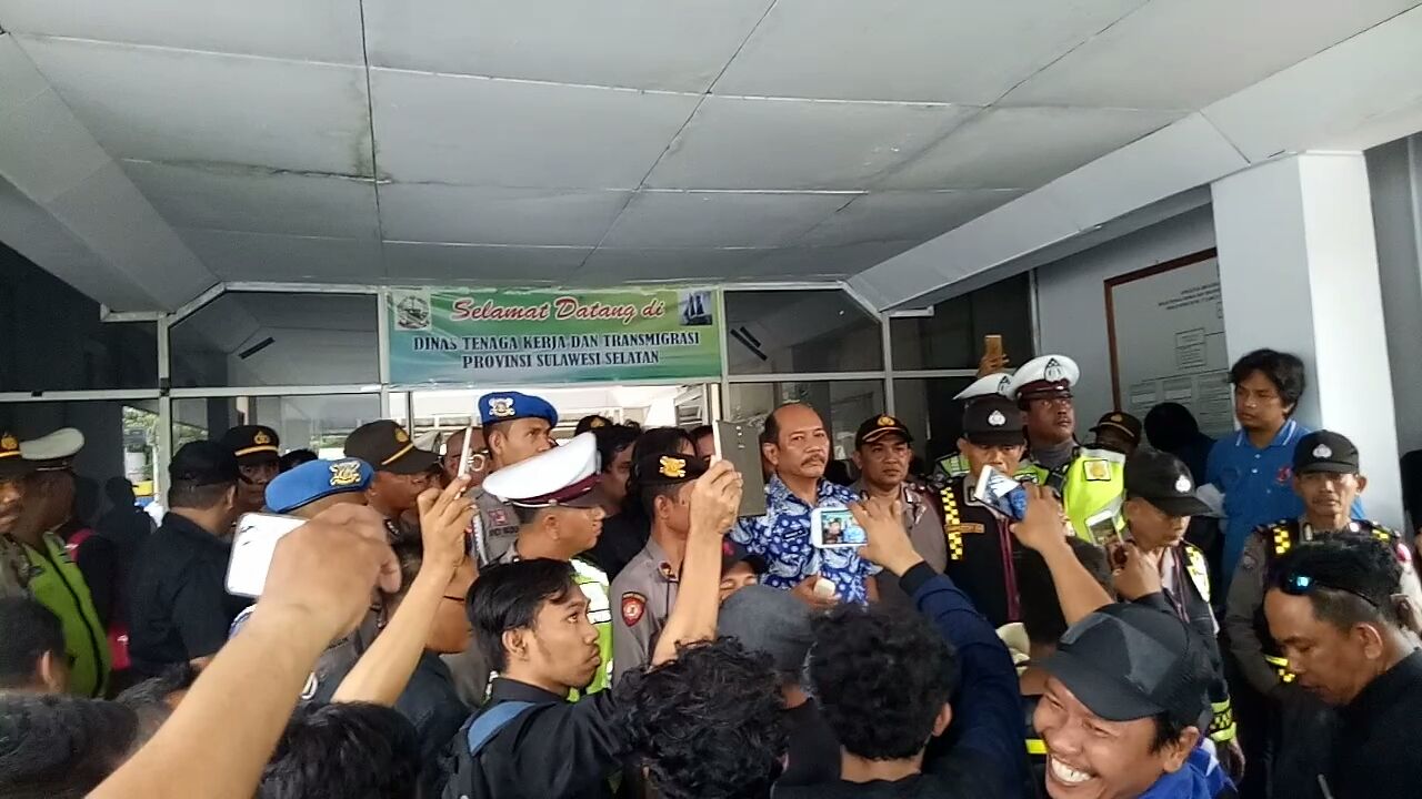 Polrestabesmakassar.com- Kesigapan Polri dalam mengawal, mengamankan aksi unras sehingga tidak terjadi kontak pisik di Kantor Dinas tenaga kerja dan transmigrasi provinsi sulsel bertempat di Jl. Perintis Kemerdekaan Makassar, Kamis (18/01/2018).