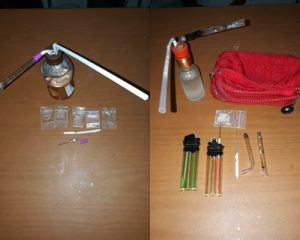 Penggeledahan di kamar RT polisi menemukan barang bukti berupa, 1 saset bening berisi kristal diduga narkotika jenis sabu tersimpan di tas kecil warna merah, 1 buah tas kecil warna merah, 2 buah korek, 1 buah pipet sendok warna putih, 1 paket alat hisap dan pirex siap pakai dan 2 buah pirex.