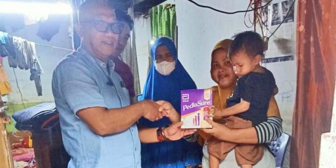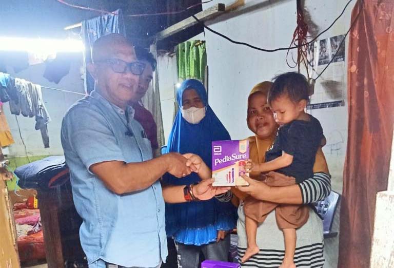 Akbar balita 1,6 tahun yang mengalami stunting langsung diberikan bantuan berupa 4 Dos susu Pediasure, 2 Rak Telur dan Beras 25 Kg.