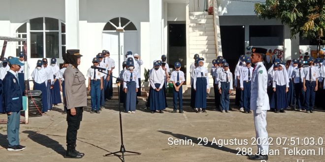 Makassar, Wakapolsek Tamalanrea AKP Kun Sudarwati menjadi Inspektur Upacara (Irup) Bendera yang berlangsung di SMK Yayasan Laniang, BTP, Tamalanrea Makassar, Senin(29/8/2022) pagi.