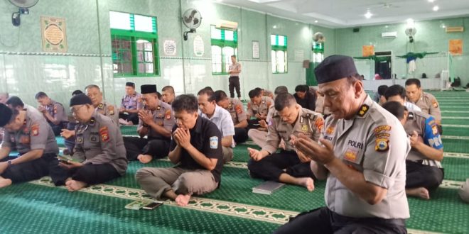 Kegiatan doa bersama di masjid dipandu oleh ustadz Ipda Sahuddin Rahman, SH yang dihadiri pejabat utama Polrestabes Makassar, personil dan PNS Polrestabes Makassar. (Hms/Bs)