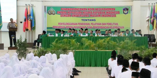 Kapolda Sulsel di hadapan 5600 mahasiwa baru Umi menjelaskan bagaimana situasi terkini Kamtibmas, Dan keprihatinannya akan masalah yang timbul diantara masyarakat Sulawesi Selatan terkhususnya penyimpangan yang belakangan ini marak terjadi.