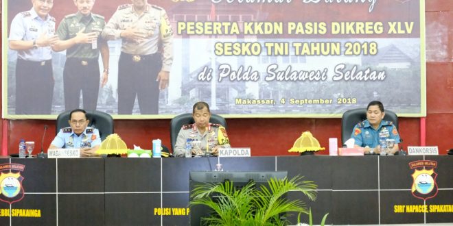 Usai kegiatan tersebut, Kegiatan di lanjutkan dengan Acara KKDN (Kuliah Kerja Dalam Negeri ) Pasis Dikreg XLV Sesko TNI TA. 2018 yang di selenggarakan di Aula Anindhita Lt III Mapolda Sulsel.