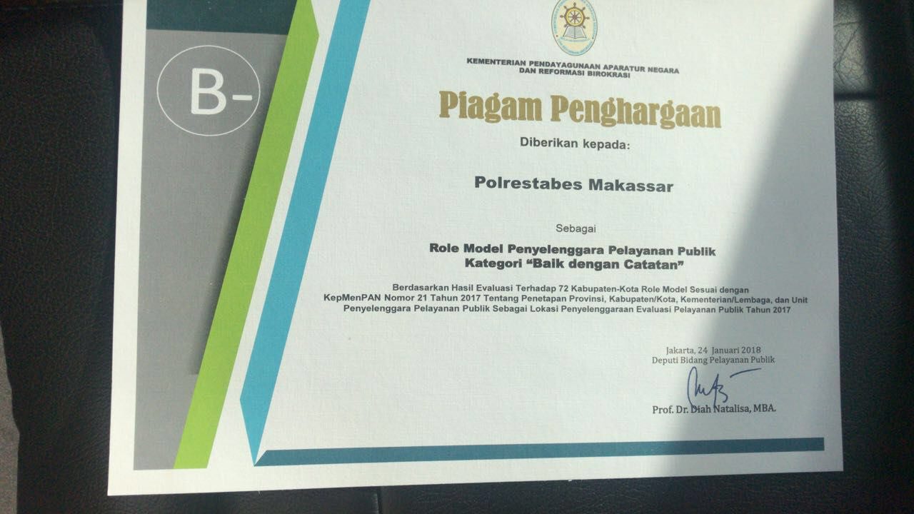 Kapolrestabes Makassar Kombes Pol. Anwar Efendi,Sik,SH,MH bersama 72 Polres Lainnya menghadiri acara di kantor KemenPAN-RB dalam hal ini Polrestabes Makassar mendapat penghargaan dari KemenPAN-RB sebagai Role Model penyelenggaraan pelayanan publik. Penilaian dan survey tersebut menyasar pada unit pelayanan SKCK dan SIM di masing – masing Polres di jajaran Polda seindonesia.