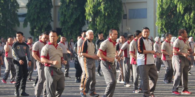 Polrestabesmakassar.com – Polda Sulsel, Kapolda Sulsel Irjen Pol Drs Umar Septono beserta anggotanya melaksanakan olahraga bersama sekaligus senam Maumere Gemu Famire yang bertempat di lapangan Apel Mapolda Sulsel pada pukul 07.00 Wita, Jum’at (31/08) Pagi.