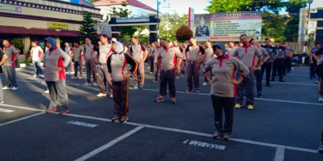 Jaga Kebugaran, Personil Polrestabes Makassar Lakukan Olahraga Bersama