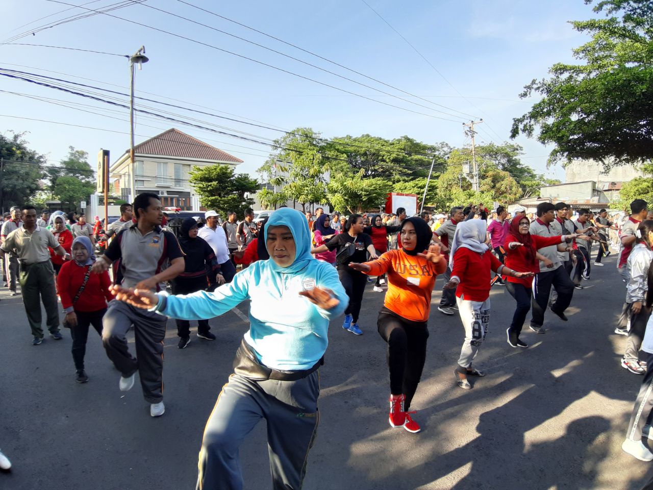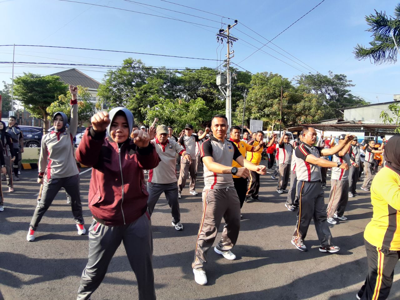Olahraga bersama dihadiri langsung, Kapolrestabes Makassar Kombes Pol Yudhiawan berlangsung di halaman mako Polsek Makassar, Sabtu (23/11/2019) diikuti Tripika Kecamatan Makassar dan warga sekitar.